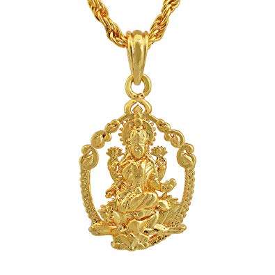 Memoir Gold Plated Brass, Goddess Lakshmi, Small and Sober, Stylish Laxmi Pendant Hindu God, Men Women